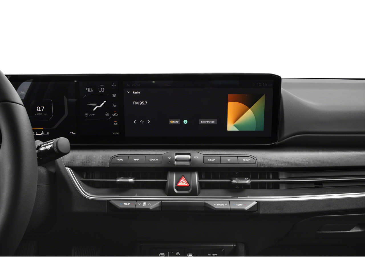 - Radio: 12.3" Touchscreen Audio Display -inc: SiriusXM, HD Radio, 6 speakers, USB connectivity, wired and wireless Apple CarPlay and Android Auto and audio and Bluetooth® hands-free w/steering remote control