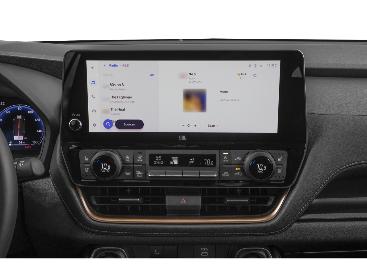 - Radio: 12.3" Toyota Audio Multimedia w/JBL Premium -inc: touchscreen, subwoofer and amplifier, wireless Apple CarPlay and Android Auto compatibility, SiriusXM w/3-month trial subscription (see toyota.com/audio-multimedia for details) and 11 speakers